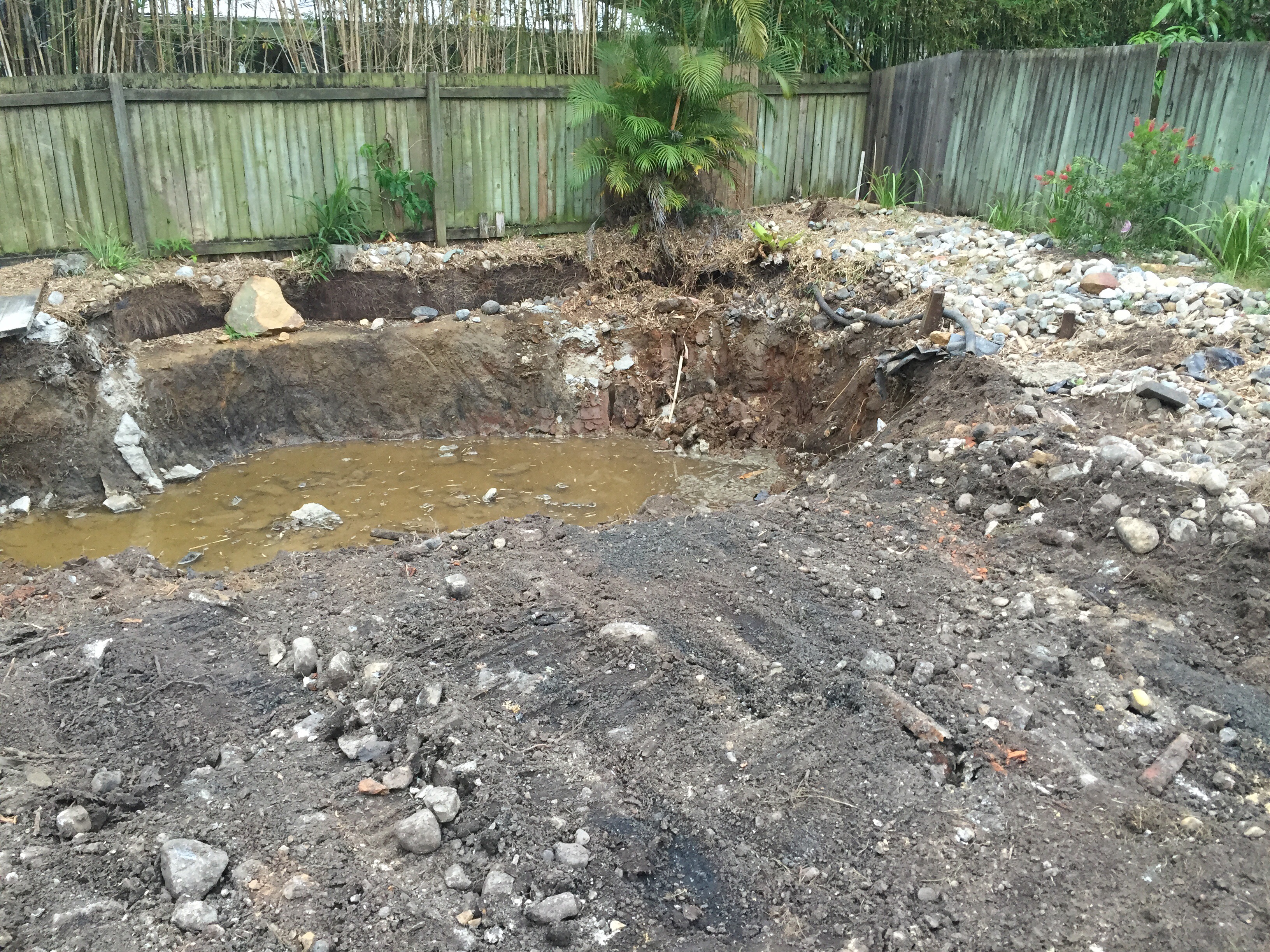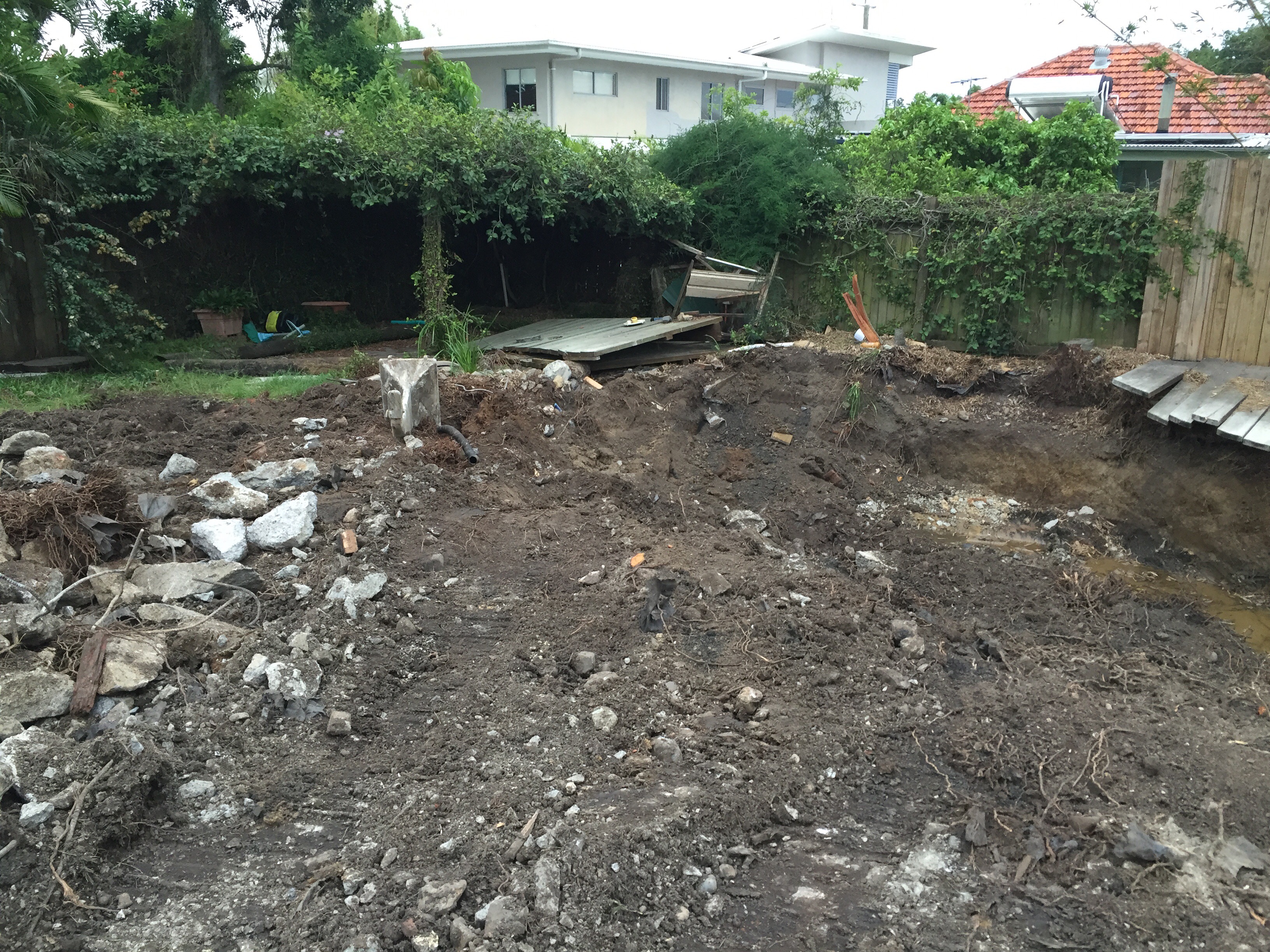 The demolition is nearly complete. The concrete from the old pool has now been dug up but yet to leave the site. All the rock boulders have gone now too.